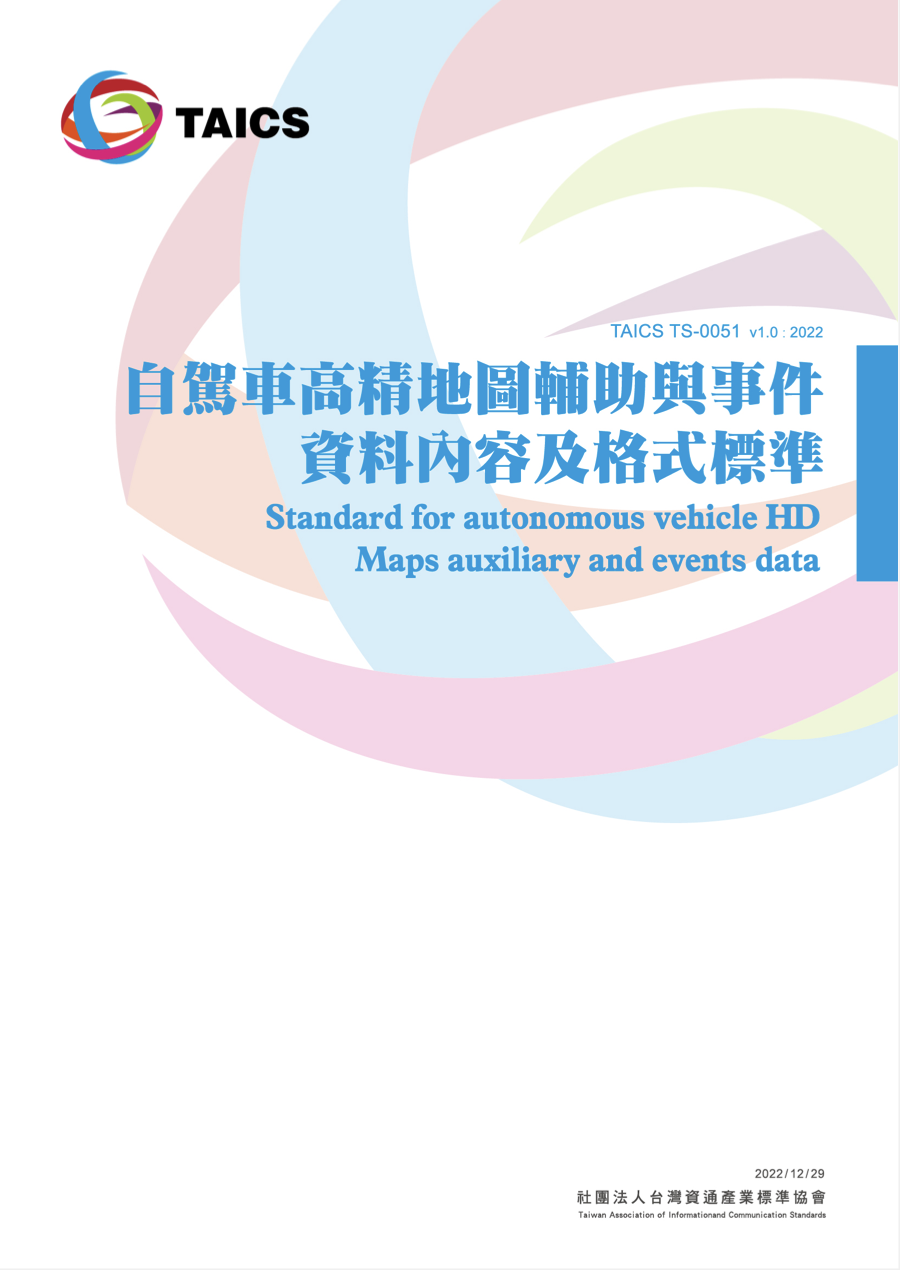 • 發布自駕車高精地圖輔助與事件資料內容與格式標準